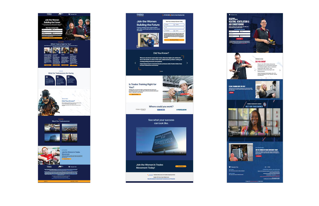 Created and launched a special web page to attract people interested in learning skilled trades. The goal was to get more sign-ups by making the page easy to use, writing clear and convincing messages, and testing different photos that showed real people working in trade careers.